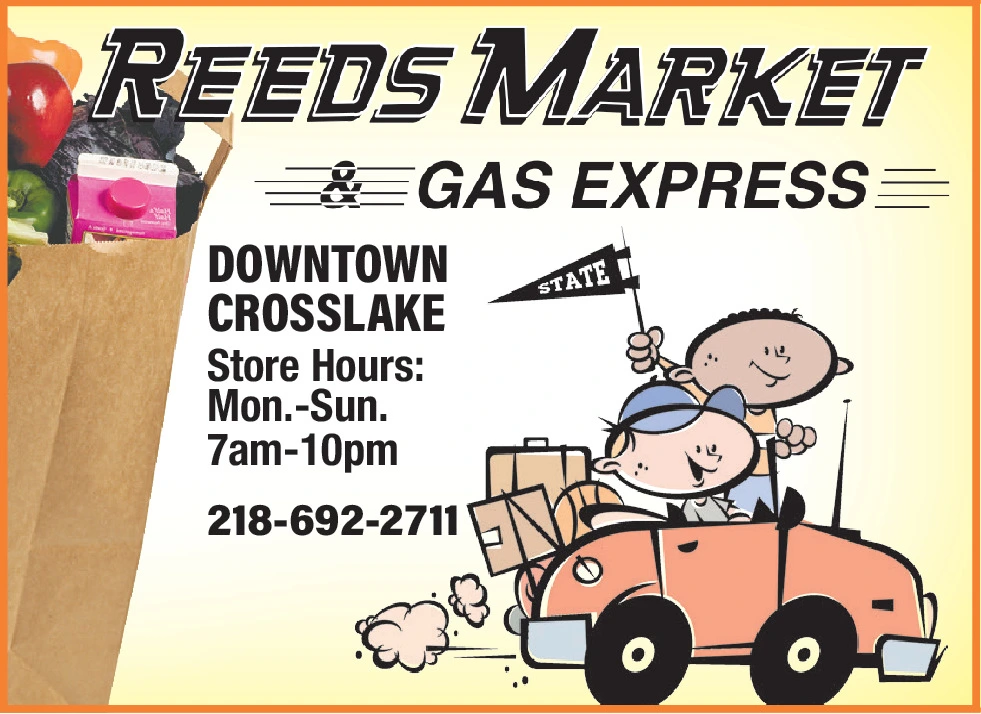 STATE I REEDS MARKET GAS EXPRESS DOWNTOWN CROSSLAKE Store Hours : Mon. - Sun . 7 am-10pm 218-692-2711 STATE I